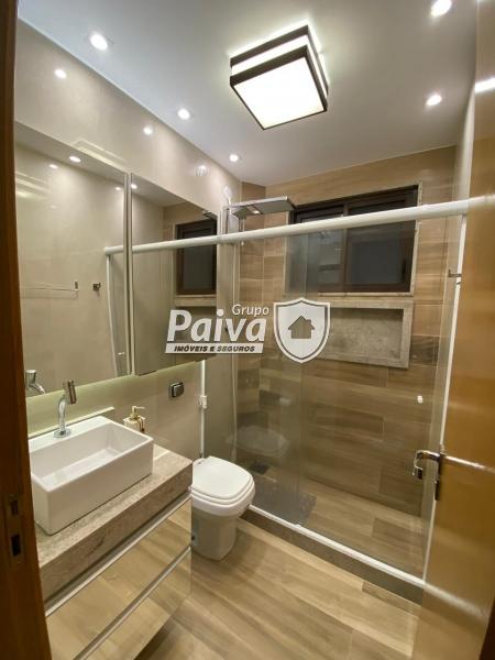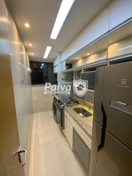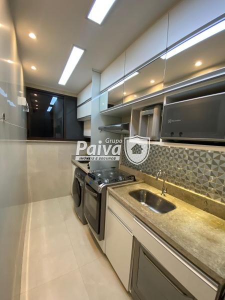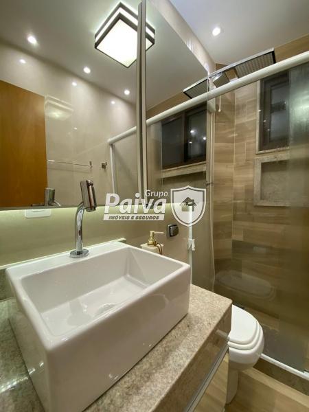 A cozinha foi planejada nos mínimos detalhes, com armários de alto padrão, bancada em pedra, eletrodomésticos modernos e acabamento clean e sofisticado. O banheiro segue o mesmo padrão refinado, com revestimentos atuais, nichos, iluminação indireta e box em vidro.